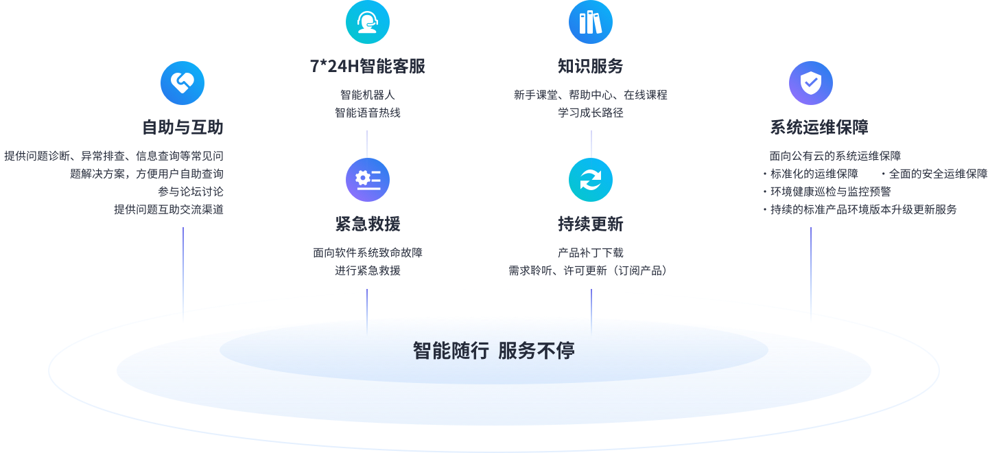 提供公有云标准化运维、环境健康巡检、监控预警及安全运维,私有云产品安全补丁推送,保障系统运行安全可靠